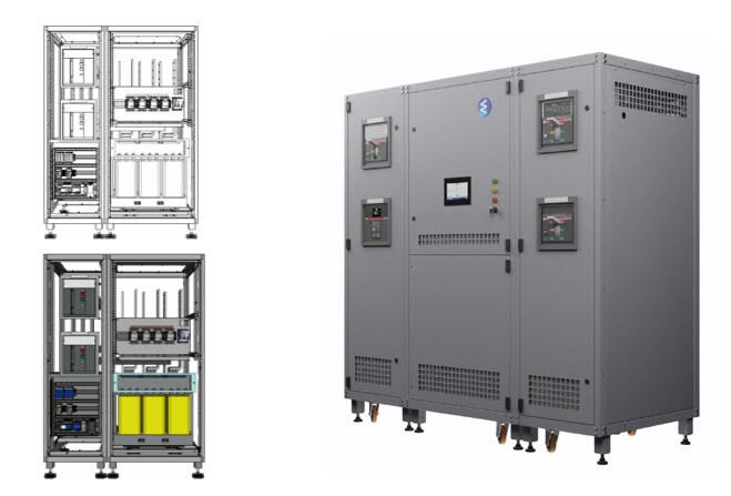 Ausgerüstet mit hochpräzisen Messinstrumenten, verschiedenen Aktoren sowie einer SPS, entsteht durch den elektrischen Aufbau des Systems eine dynamische Kombination aus Filter-und Ausgleichswirkungen. Diese verändern die elektrischen Parameter in der Art, dass sich elektrische Energieverluste im gesamten 400V Niederspannungsnetz reduzieren.